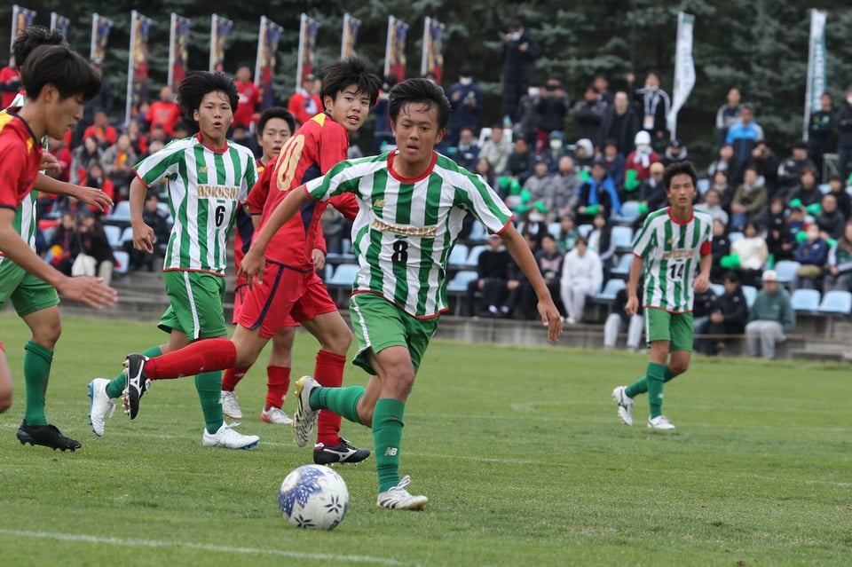 前半8分に失点後も体を張ったディフェンスで粘り続けて0−1で折り返しましたが、U−17日本代表候補ら道内屈指のメンバーを揃える札幌大谷に後半11分からの15分間で4点を奪われ、力尽きました。
