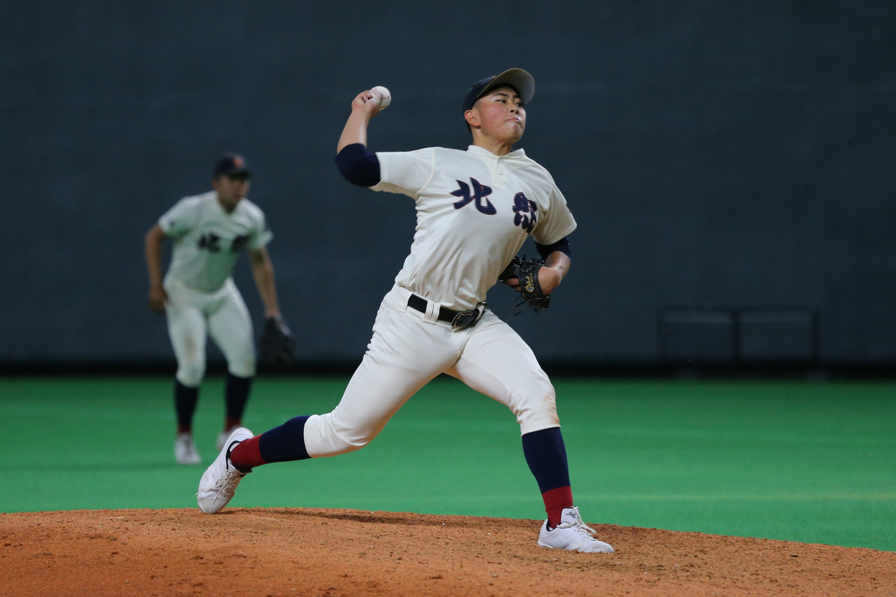 第78回秋季北海道高等学校野球大会準決勝が19日、札幌・大和ハウスプレミストドームで行われました。北照が7−0で旭川実を下し、優勝して翌春のセンバツ大会に出場した2012年の大会以来の決勝進出を決めました。初戦の北海戦、続く駒大苫小牧戦で2連続完投勝利を挙げた右腕エース島田爽介投手(2年)が3戦連続で先発し、7回92球6安打無失点と再び安定した投球を披露。打線は4番・長谷川世和一塁手(2年)が1回表2死一塁でレフトオーバーのタイムリー二塁打を放って先制し、7回までに11安打で7点を奪って7回コールド勝ちしました。