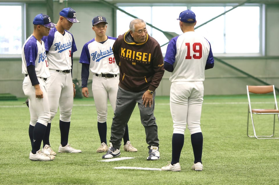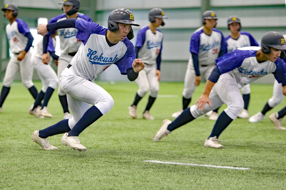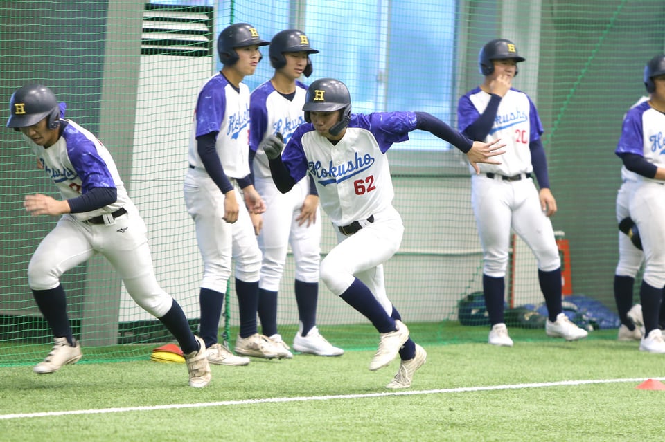 秋季北海道大会2回戦の駒大苫小牧戦では、6回表1アウト満塁の場面で相手投手の暴投でボールがバックネット裏に転がる間に、三塁ランナーも二塁ランナーもホームイン。判断よく走力で2点を奪ったシーンがありました。一方、11月の明治神宮大会では、相手一塁手がボール処理に苦戦する間に二塁走者がホームを狙いましたがアウトになり、チャンスを失いました。試合結果は1−2。判断ミスが試合結果を大きく左右しました。手代森煌斗(きらと)主将(2年)は、「普段の(走塁)練習と違う難しい動きもありましたが、春までには完全にマスターして、実戦で使えるようにしたい。教えてくださった葛原先生を喜ばせることができればうれしい」と意気込みを口にしました。