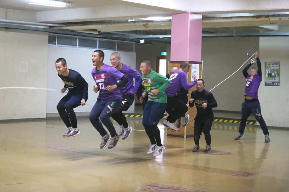 大縄跳びでは、手代森煌斗(きらと)主将、エース島田爽介投手、4番打者の長谷川世和(せな)内野手ら全員野球部で臨んだ2年C組が、誰も見ていないことを良いことに10回以上練習し、成功13回で一時トップに立って大喜び。ところが、直後にチャレンジ会場にやってきた女子サッカー部&5番打者・畠山柊太外野手(2年)でチームを組んだ2年B組が、わずか3回の練習で40回以上も跳んで、あっさり抜き去ってしまうという場面がありました。