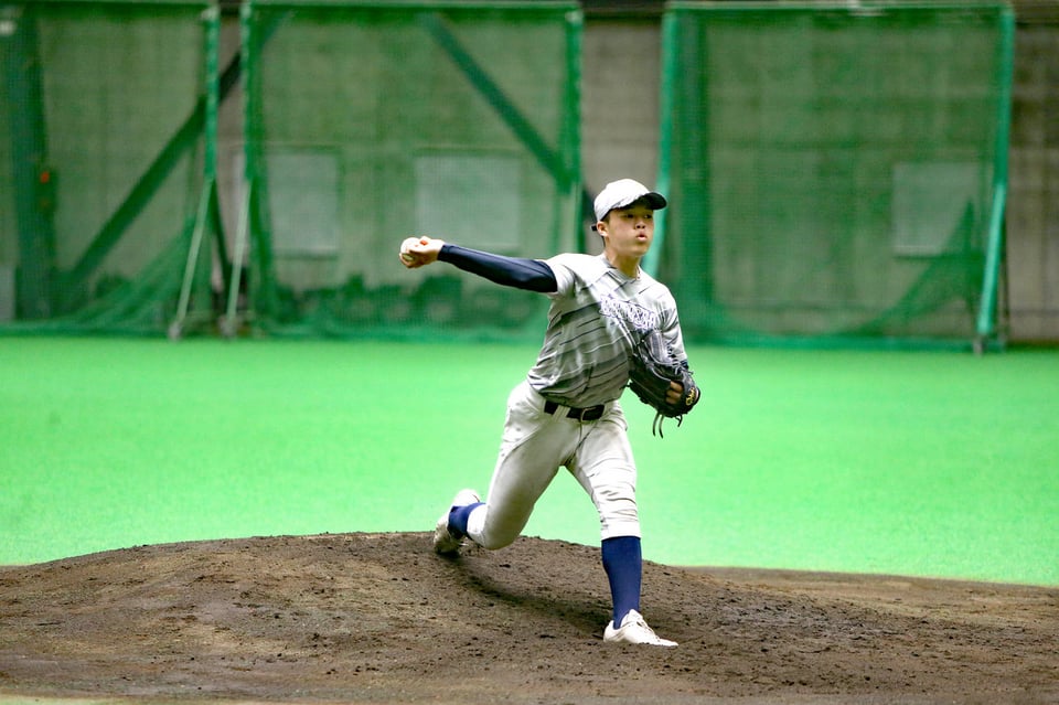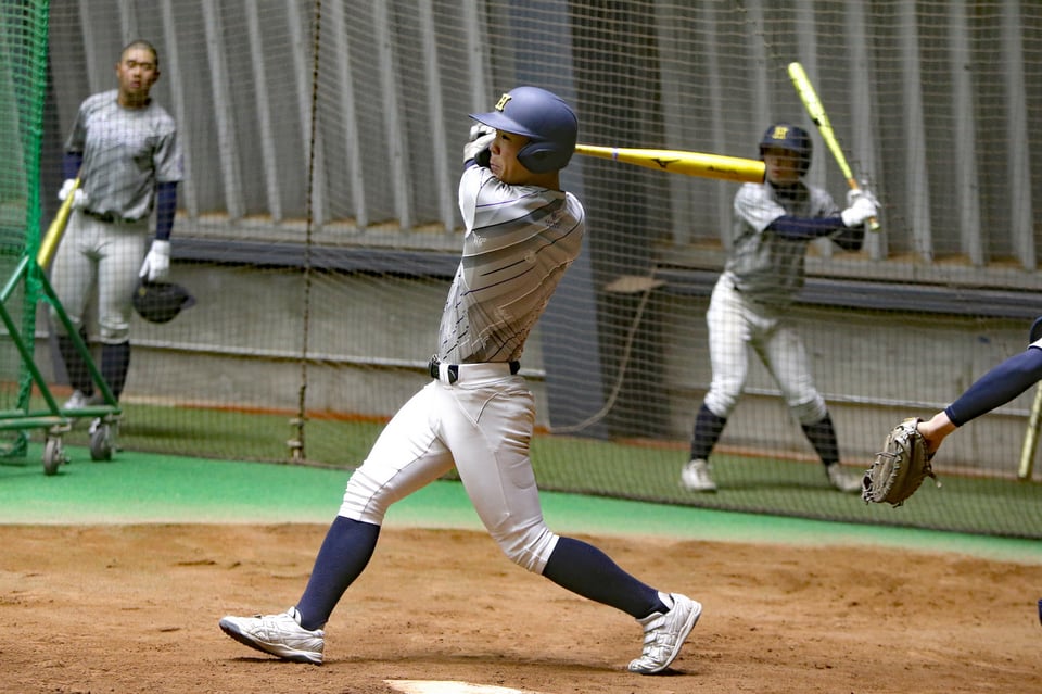 野球部は2月21日と23日の2日間、札幌市内の北海道日本ハムファイターズの屋内練習場で練習を行いました。ピッチャー陣では、シート打撃に登板した尹悠人(ユン・ユイン)投手(2年)が、昨年末から挑戦中の横手の新投球フォームに手応えを口にしました。「球種は増やしていませんが、右打者の内角に落ちるシンカーが、効果的なボールになってきました」と、笑顔を見せました。小学校の時、星稜高を夏の甲子園準優勝に導いた奥川恭伸投手(ヤクルト)に憧れた尹投手。「(大和ハウスプレミスト)ドームでも、神宮球場でも投げる機会がありませんでしたので、甲子園ではマウンドに立って、ゲームを作りたい」と力強く話していました。シート打撃では、手代森煌斗(きらと)主将が久々に左打ちの練習を行うなど、センバツ大会(3月19日から、阪神甲子園)に向けて着々と準備が整っているようでした。