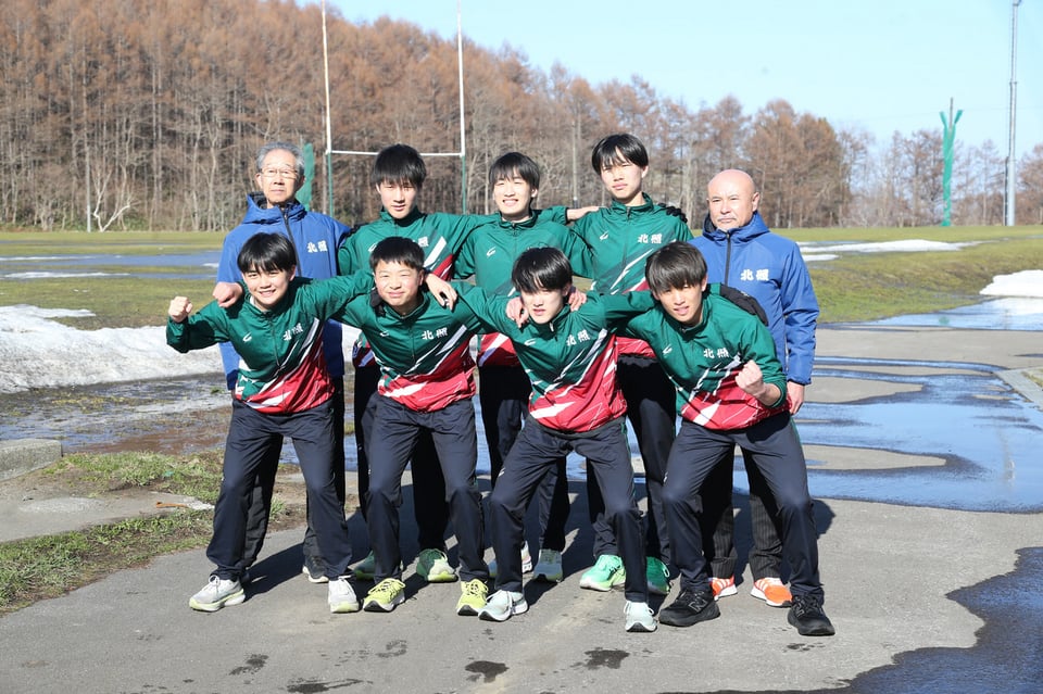 スポーツコースの陸上部・駅伝チームが4月8日、1年生の男子6人、女子1人の計7人で本格トレーニングを開始しました。本校の駅伝チーム結成は43年ぶり。室蘭大谷高校(現北海道大谷室蘭高校)や札幌日大高校を全国大会に導いた工藤裕之総監督、オリンピック選手を育てた経験のある阿部一也監督の指導で、過去9度の全国大会出場を誇る名門チームの復活を目指します。阿部監督は、「今年入学してくれた生徒たちが3年生になった時に男女とも全国大会に出場できるように強化を進めて行きたい」と目標を掲げました。今後は5月3日の記録会(千歳)に参加、北海道高等学校陸上競技大会小樽支部予選会(インターハイ小樽支部予選)を目指します。